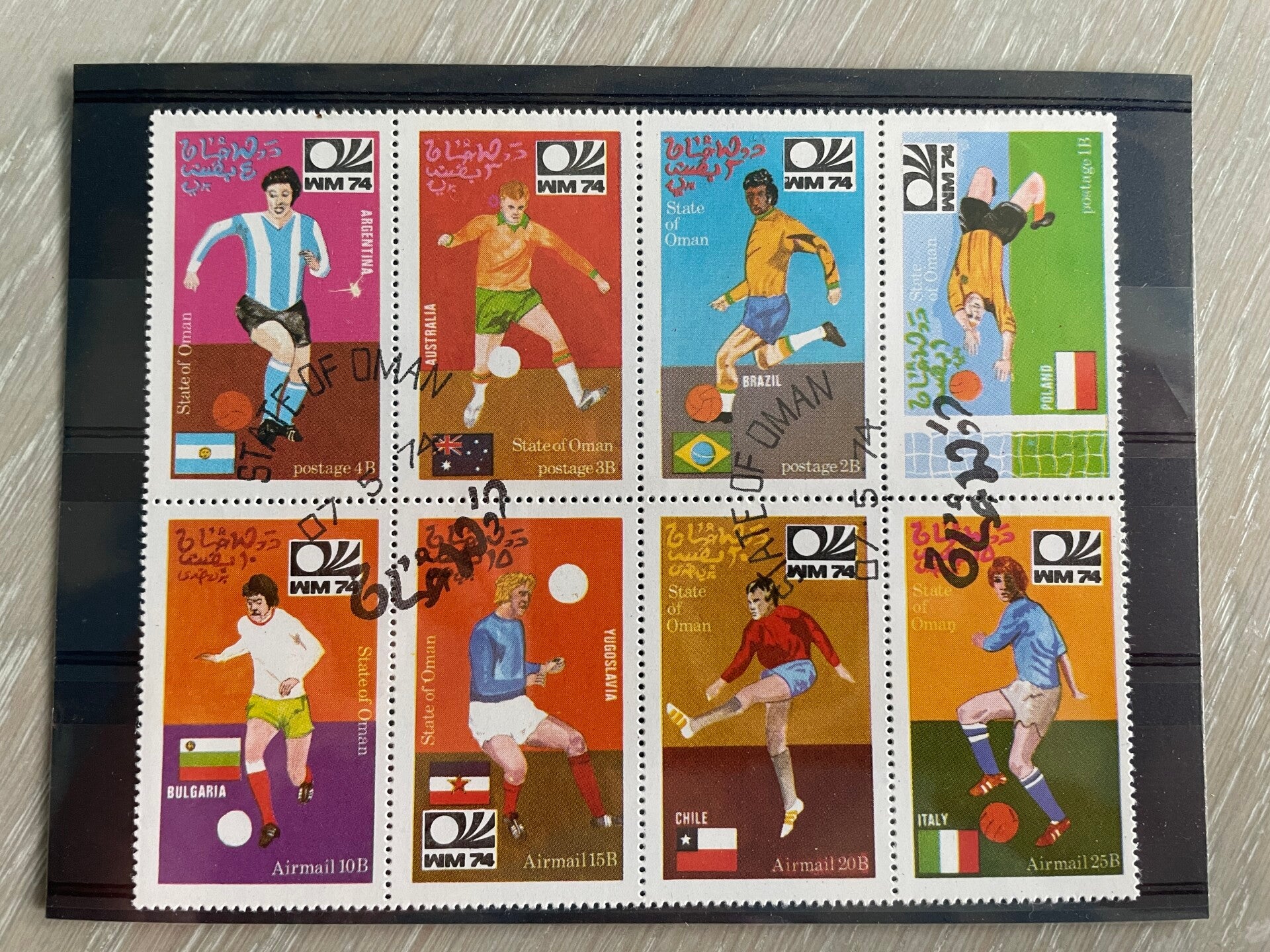 (FB15) STATE OF OMAN 1974 : SOCCER FOOTBALL - VFU BLOCK OF 8