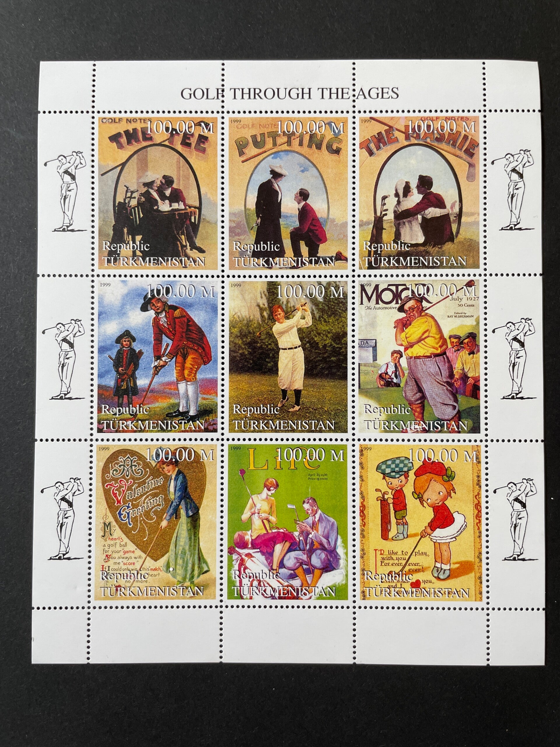 (SD) TURKMENISTAN 1999 : GOLF SPORT TROUGH THE AGES - MNH VF SHEET OF 9
