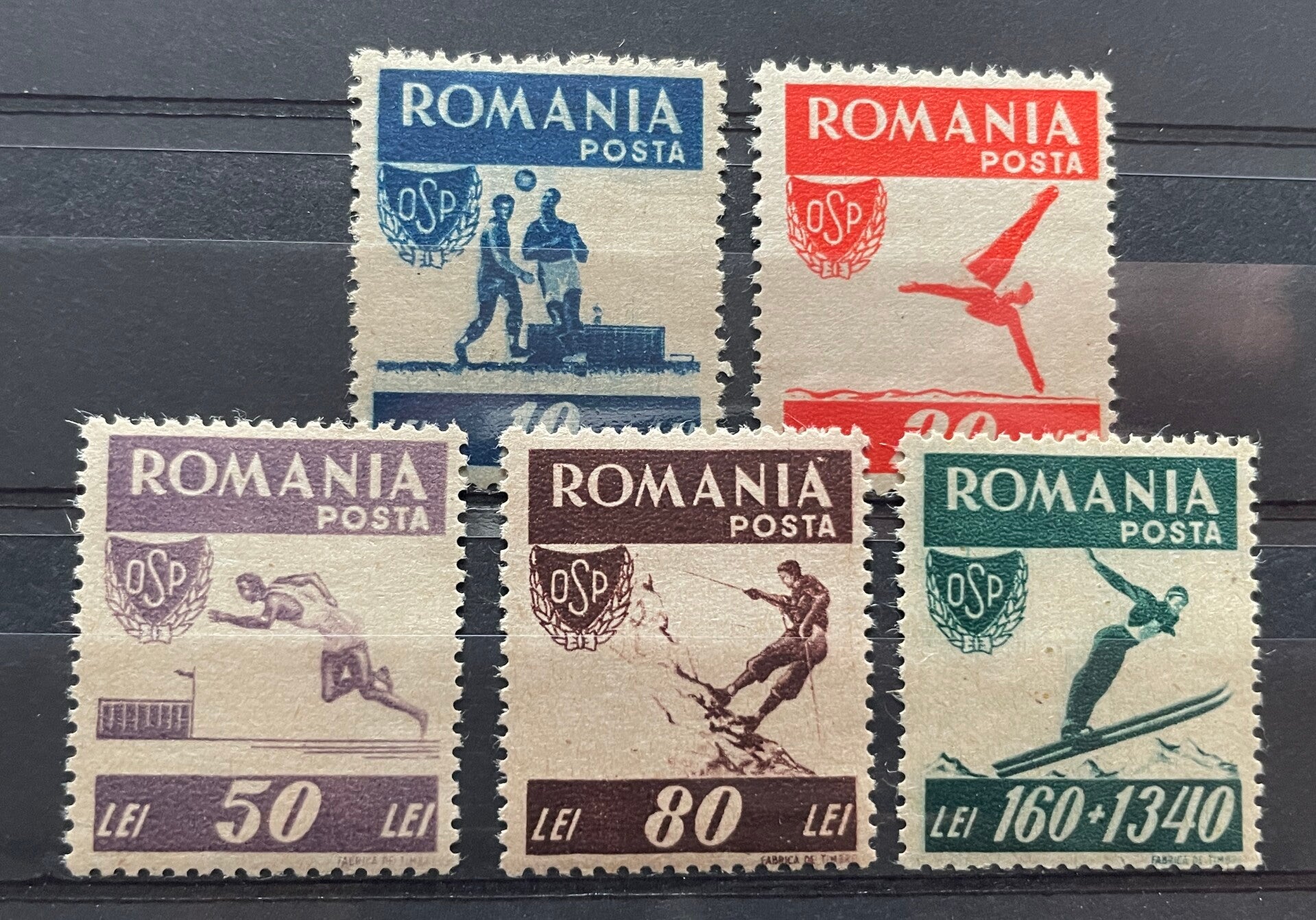 (2657) ROMANIA 1946 : Sc# 628-631+b340 RUNNING SOCCER divING MOUNTAIN CLIMBING - MNH VF