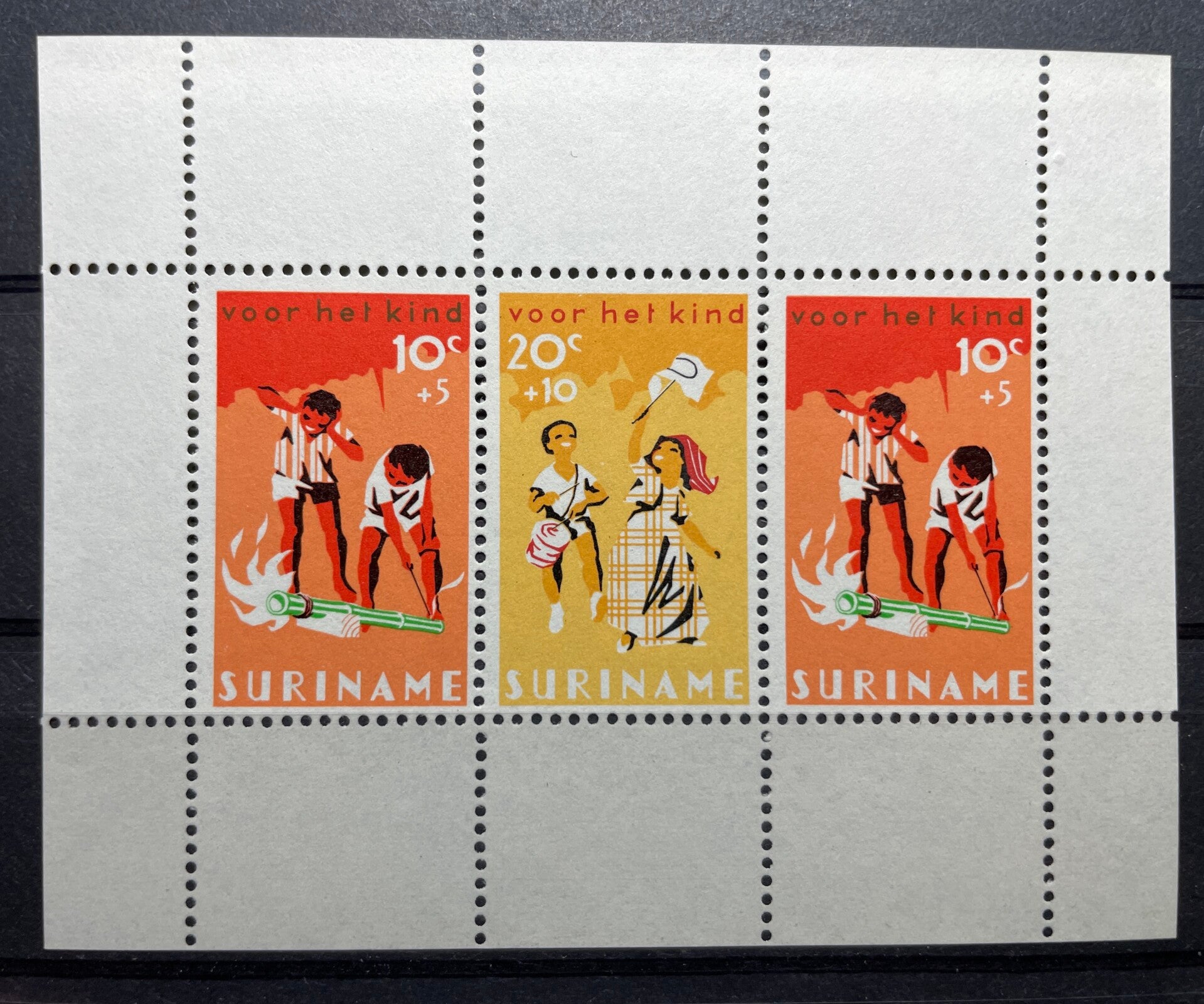 (397) SURINAME 1966 : Sc# 129a CHILD WELFARE BAMBOO GUN PARADING CHILDREN - MNH VF S/S